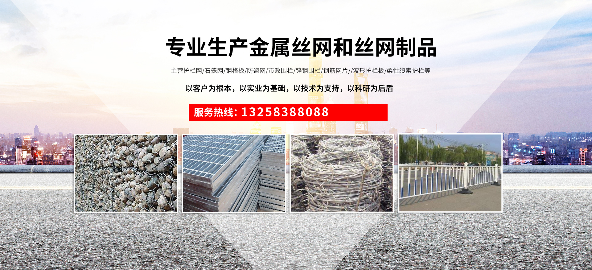 成都宏旭金屬絲網(wǎng)制造有限公司主營護欄網(wǎng)系列、石籠網(wǎng)系列、鋼格板、防盜網(wǎng)、市政圍欄、鋅鋼圍欄、鋼筋網(wǎng)片、聲屏障系列、波形護欄板、柔性纜索護欄、SNS邊坡防護網(wǎng)等其他絲網(wǎng)類產(chǎn)品。特殊規(guī)格可加工定做,也可根據(jù)客戶來圖來樣定做。自創(chuàng)業(yè)以來,公司一直堅持市場為導(dǎo)向,以客戶為根本,以實業(yè)為基礎(chǔ),以技術(shù)為支持,以科研為后盾,集科研、生產(chǎn)、經(jīng)營為一體,不斷研制開發(fā)新產(chǎn)品,開拓市場,走綜合發(fā)展之路。多年來,公司憑借過硬的質(zhì)量,良好的信譽、優(yōu)質(zhì)的服務(wù)、合理的價格,贏得了市場和商家的一致好評。